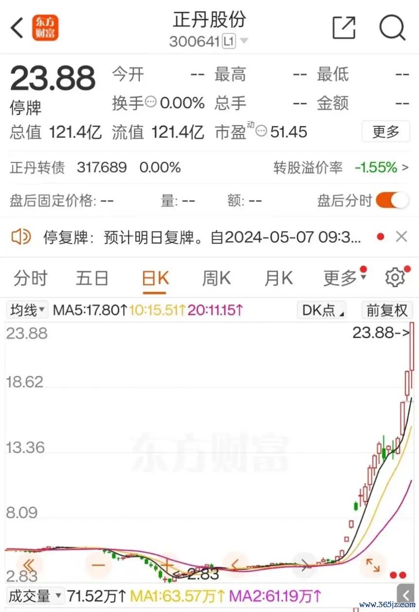 正丹股份股票与可转债从5月7日开始停牌。在停牌前,这只化工大牛股股价持续创新高。