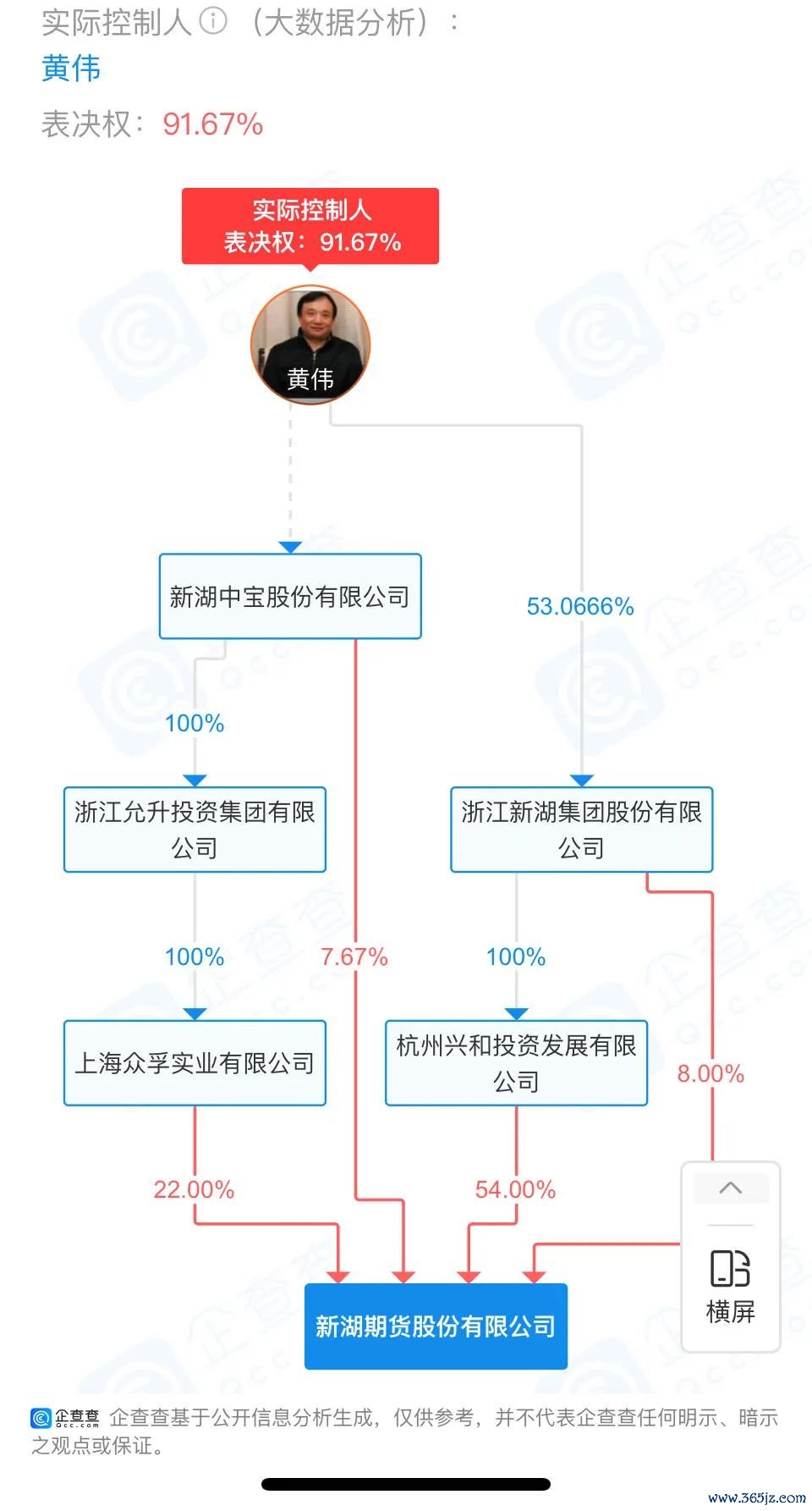 企查查显示,“新湖系”掌门人黄伟通过兴和投资控制新湖期货54%的股份,通过众孚实业、新湖集团、新湖中宝分别控制公司22%、8%、7.67%的股份,合计控制公司91.67%股份的表决权。李萍持有新湖集团22.76%的股权、间接持有新湖期货5%以上的股份,与黄伟为夫妻关系。