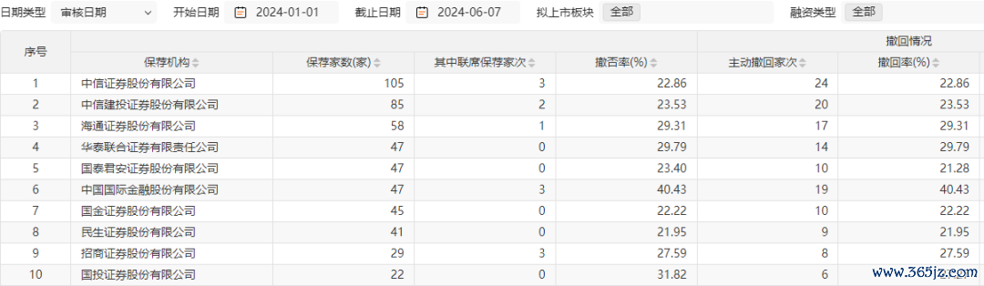 A股IPO近期出现撤单潮。统计显示,截至6月7日,A股IPO主动撤回的公司家数达到195家,为去年全年撤回总数(265家)的74%。头部券商项目均有大面积撤回,中信证券、中信建投、海通证券等今年以来撤回率均超20%。
